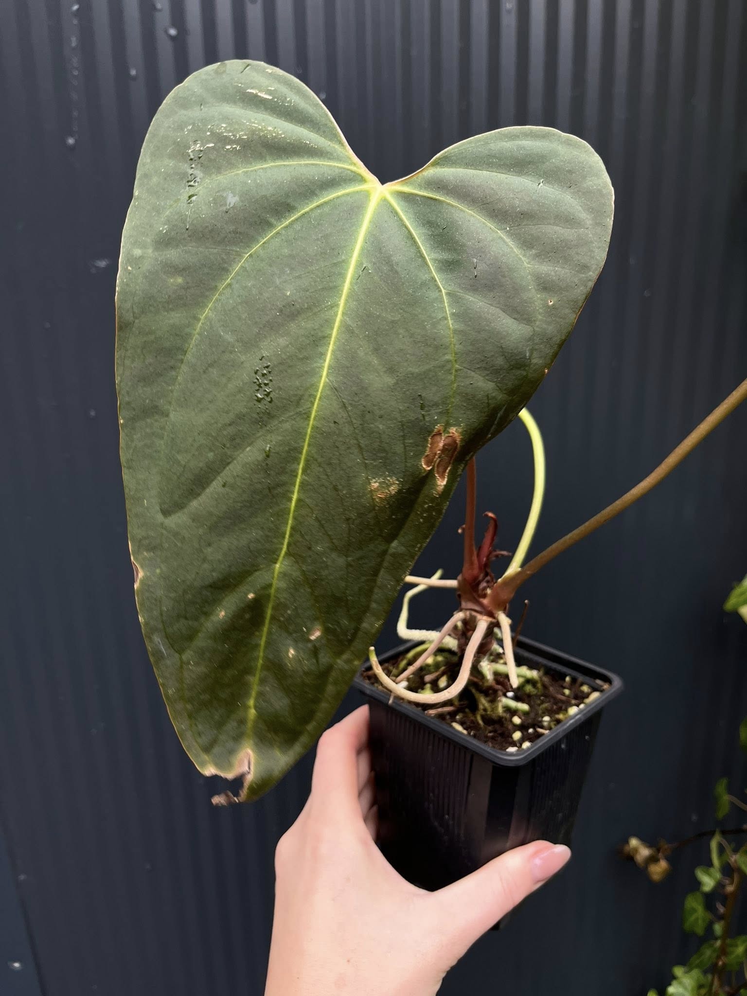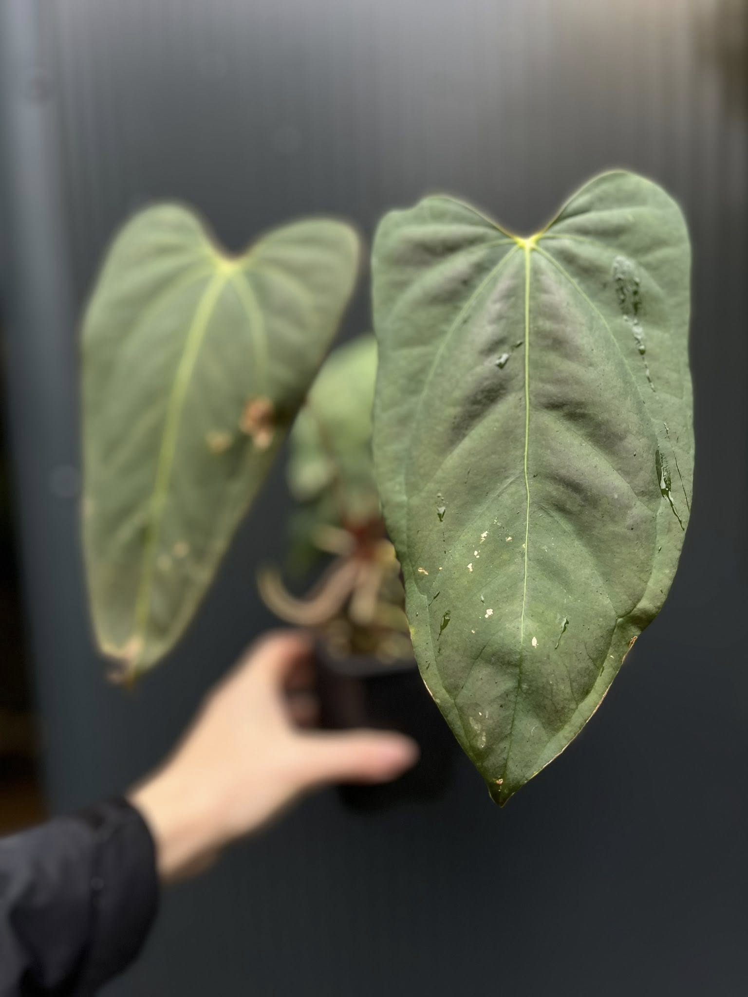 Anthurium Blue Papillilaminum × Portillae to wyjątkowe połączenie aksamitnej głębi i subtelnego, niebieskawego połysku, które sprawia, że każda roślina wygląda jak żywe dzieło sztuki. Dzięki dziedzictwu obu linii — Papillilaminum i Portillae — ta hybryda łączy w sobie teksturalną elegancję, doskonałe proporcje i wyrafinowaną kolorystykę, będąc prawdziwą ozdobą każdej kolekcji roślin tropikalnych.