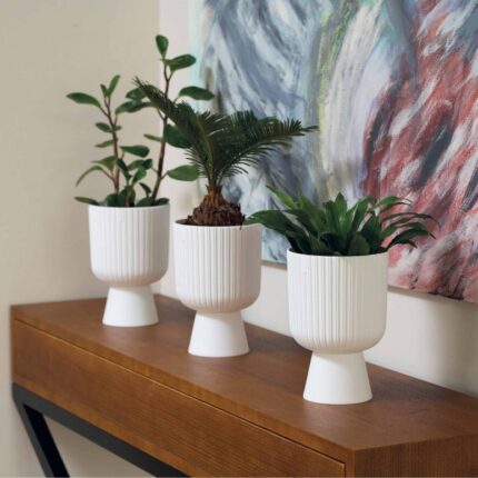 Osłonka na nóżce Keli Mika to nie tylko praktyczne rozwiązanie dla Twoich roślin, ale również stylowy dodatek, który podkreśli wyjątkowy charakter Twojego wnętrza. Wybierz swój ulubiony kolor i rozmiar, aby stworzyć harmonijną i elegancką aranżację roślinną.