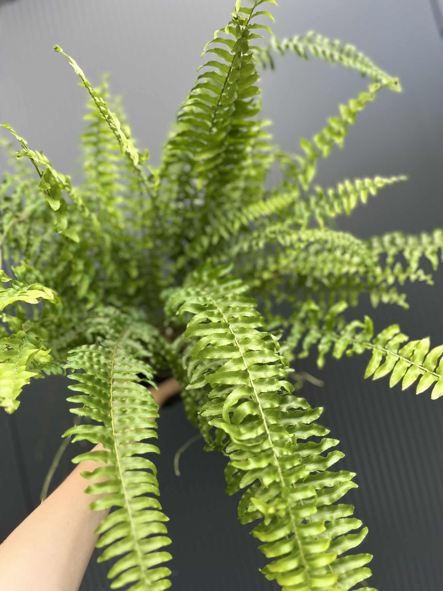 Paproć Boston to klasyczna roślina o bujnych, pierzastych liściach – idealna do półcienia i wnętrz z podwyższoną wilgotnością.