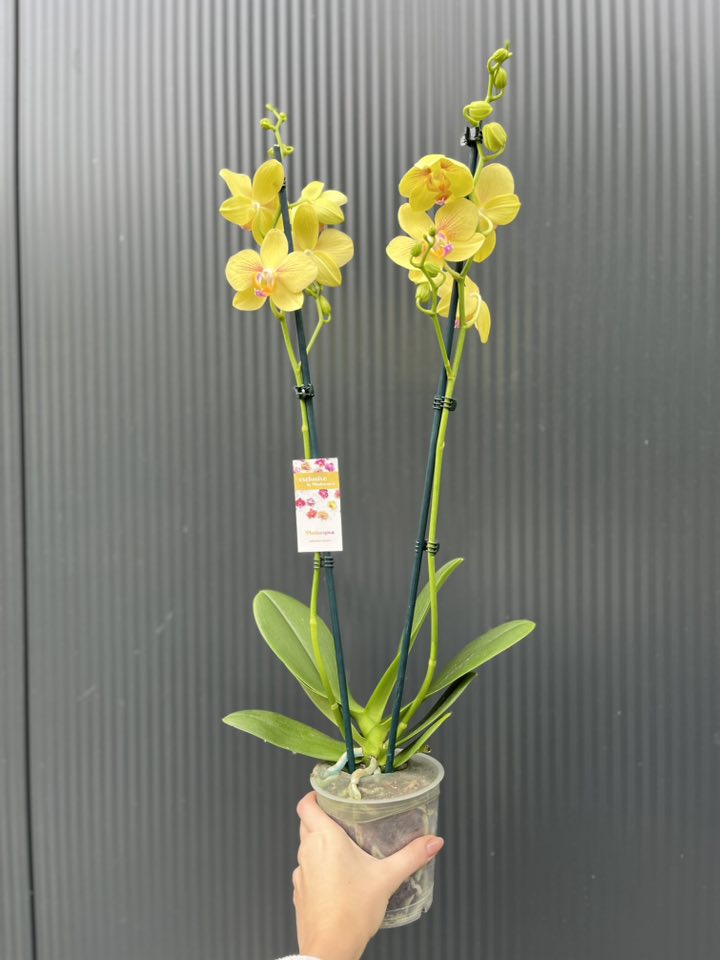 Phalaenopsis Inti Sun to spektakularna hybryda storczyka o intensywnych, żółto-złotych kwiatach z delikatnym rumieńcem pomarańczy i różu. Jego nazwa „Inti Sun” nawiązuje do inkaskiego boga słońca, co doskonale oddaje charakter tej rośliny – ciepło, światło i pozytywną energię, które wnosi do każdego wnętrza.