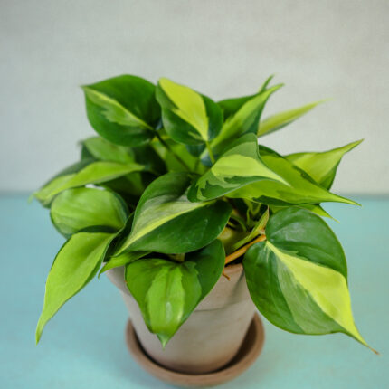 Philodendron Scandens Brasil to efektowne, łatwe w uprawie pnącze, które wyróżnia się sercowatymi liśćmi z charakterystycznym limonkowym pasem biegnącym przez ich środek. Jego dekoracyjne, błyszczące liście dodają wnętrzom świeżości i tropikalnego uroku, a szybki wzrost sprawia, że świetnie sprawdzi się jako roślina wisząca lub prowadzona na podporze.