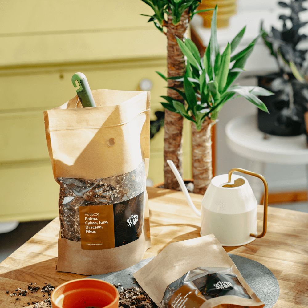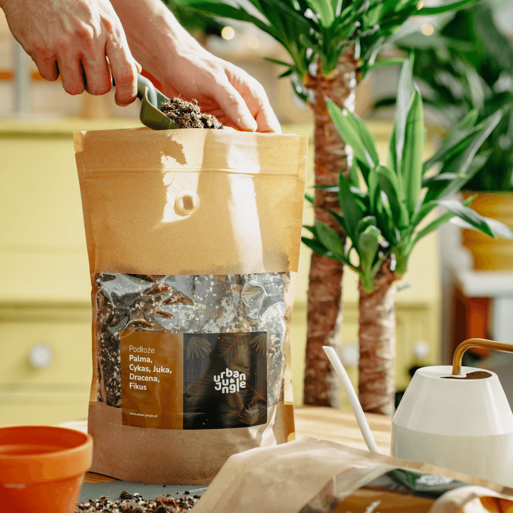 Aby domowa uprawa tych roślin przynosiła radość i efekty, należy przede wszystkim zapewnić im odpowiednie podłoże, które będzie stwarzało roślinom warunki podobne do naturalnych. To zadanie warto powierzyć specjalistycznym podłożom Urban Jungle. Podłoże typu bigos do palmy, cykasa, juki, draceny i fikusa, to idealna mieszanka przygotowana z zaangażowaniem i miłością do roślin w sposób gwarantujący spełnienie wszystkich wymagań glebowych. Kombinacja składników zapewnia odpowiednią przepuszczalność i doskonałe napowietrzenie korzeni, a dodatek nawozu, dobranego specjalnie pod zapotrzebowanie juk, dracen czy palm, gwarantuje odpowiednie zasilenie przez 9 miesięcy i ogranicza ryzyko przenawożenia.