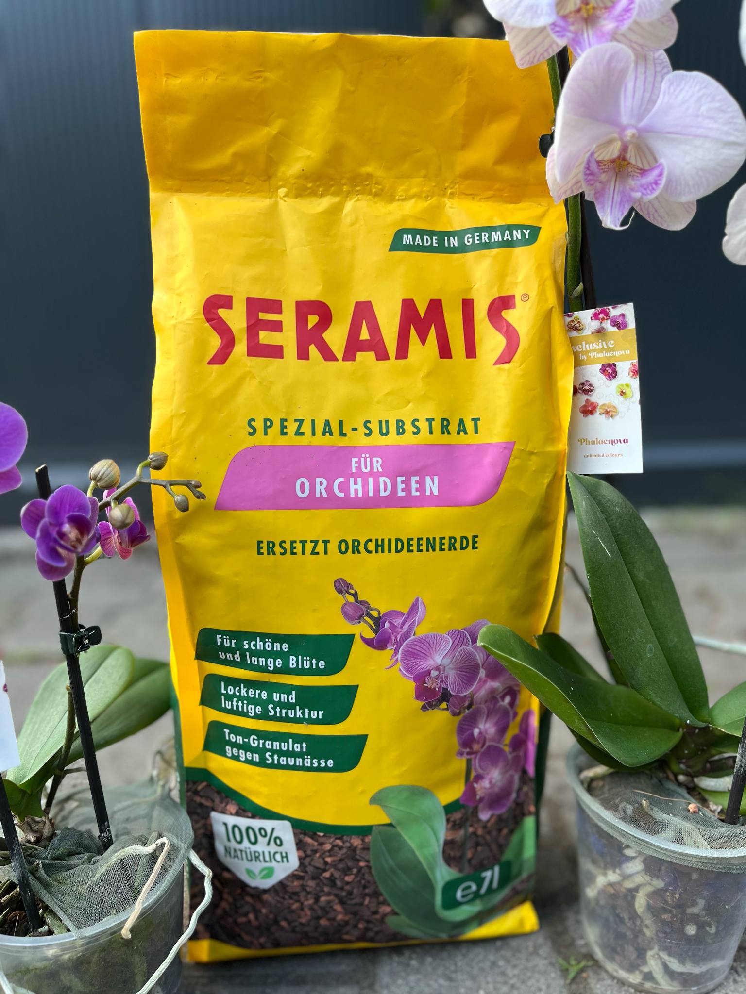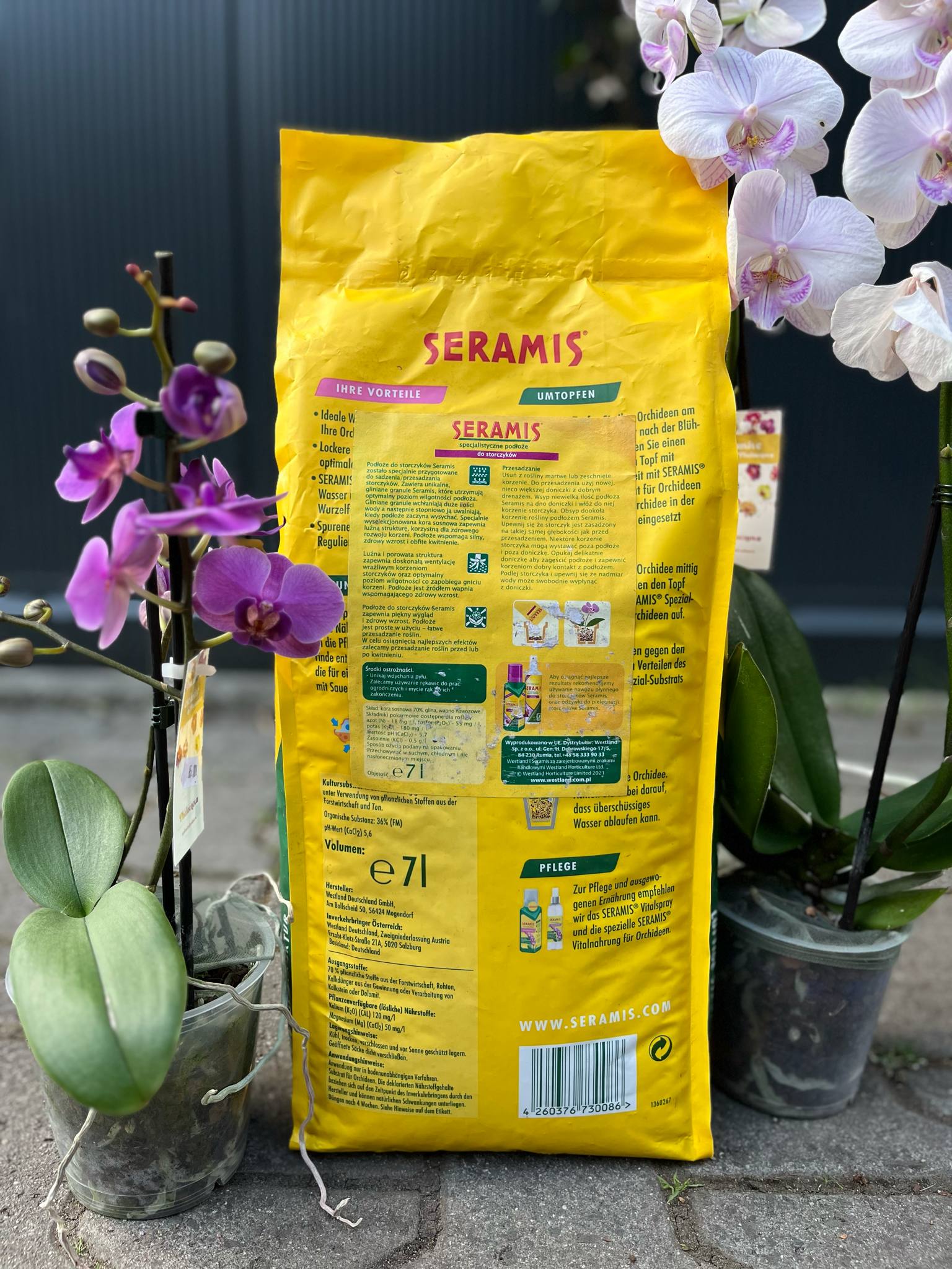 Seramis to innowacyjne podłoże przeznaczone dla storczyków. Składa się z kawałków kory sosnowej oraz sporych granulek z wypalonej gliny. Dzięki naturalnemu składowi jest idealne dla alergików.