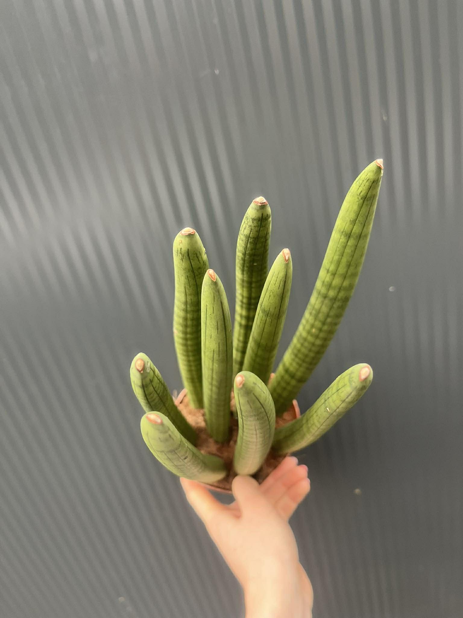 Sansewieria cylindryczna to tropikalna roślina o cylindrycznych, wzniesionych liściach, które tworzą ciekawy, nowoczesny kształt. Jest niezwykle dekoracyjna, odporna i łatwa w uprawie, idealna do domu, biura lub minimalistycznych wnętrz.