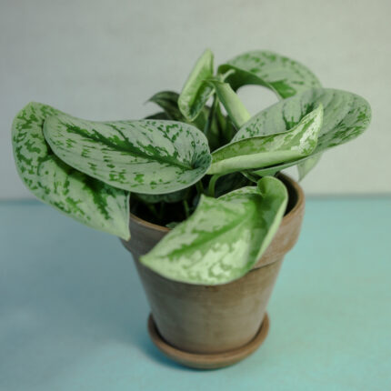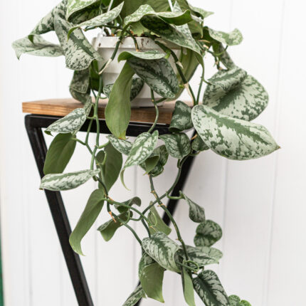 Scindapsus pictus Trebie to wyjątkowe pnącze, o wielkich srebrzystych liściach, jest idealny do zazielenienia ciemniejszego miejsca, poradzi sobie w trudniejszych warunkach.
